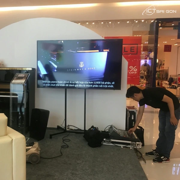 Đặc biệt, ICT Sài Gòn cũng triển khai dịch vụ cho thuê giá treo tivi giúp khách hàng linh động hơn trong việc sắp xếp, tổ chức thiết bị để trở nên chuyên nghiệp hơn.